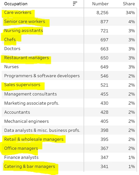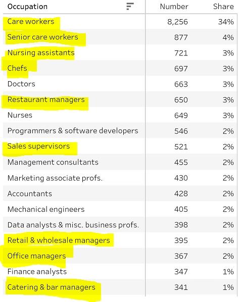 International students graduating from UK universities who were awarded "skilled worker" visas were 17 times more likely to become care workers than they were to become programmers or software developers.