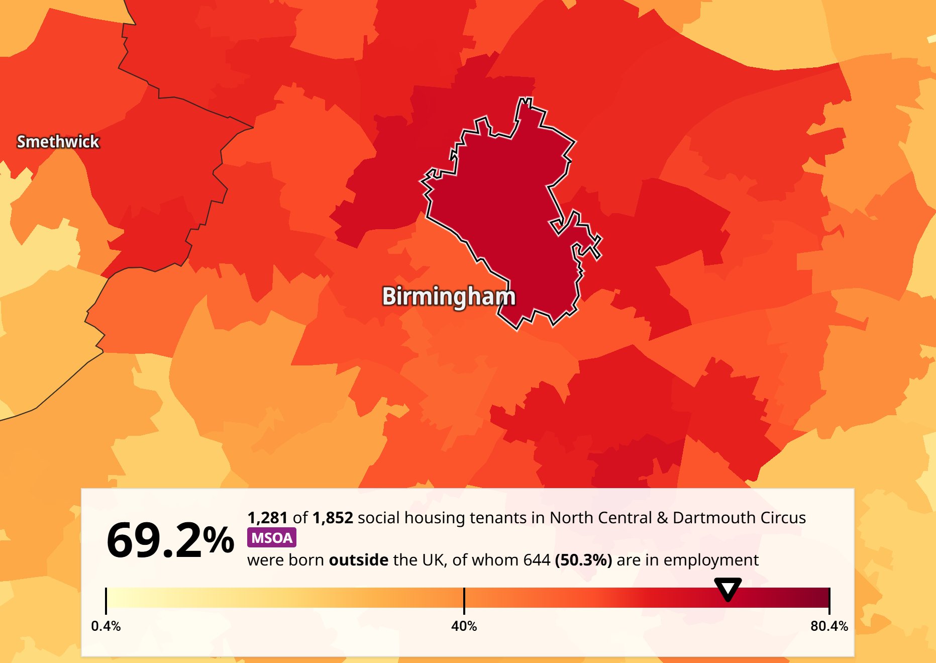 Social housing in the centre of Birmingham, Britain's second largest city, is dominated by people born overseas.