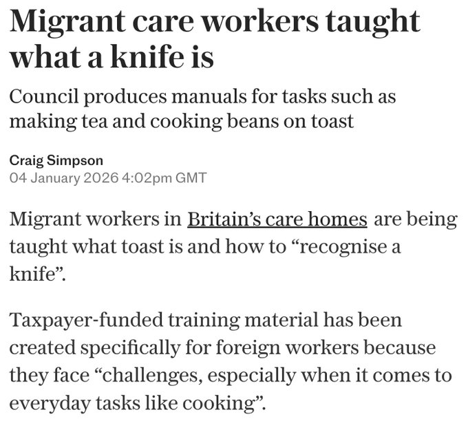 The government distributed £15m in 2023 to councils to boost the recruitment of foreign care staff. Then, taxpayer-funded training material had to be created because foreign care staff faced 'challenges' with everyday tasks such as cooking and how to make tea.