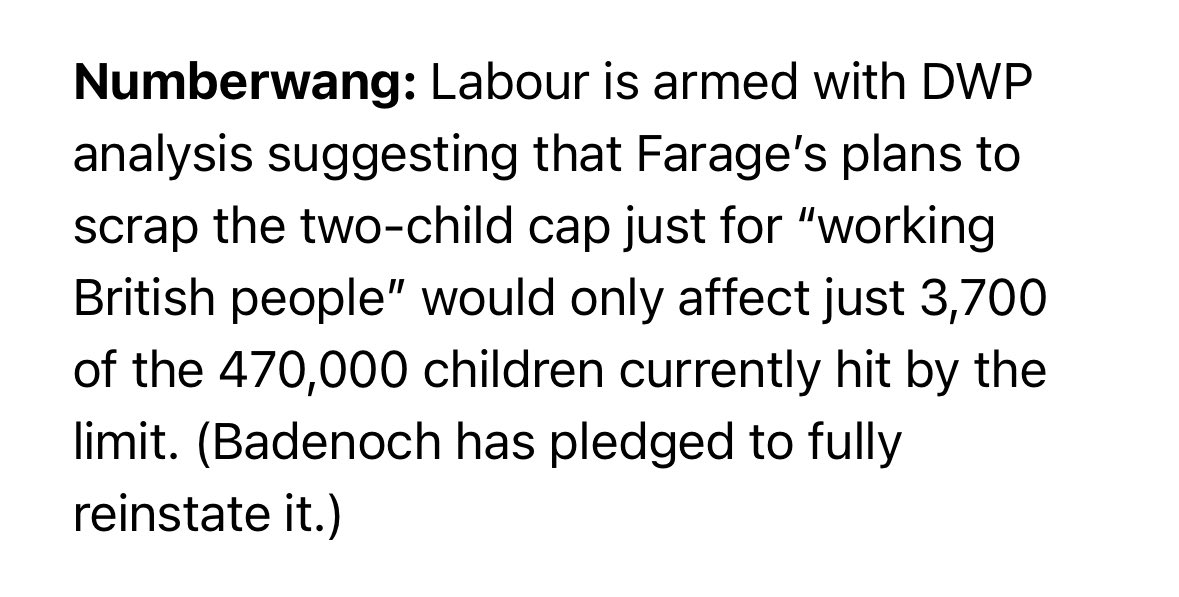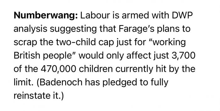 According to Labour’s own analysis, just 0.8% of those benefitting from lifting the 2 child benefit cap are children of British workers.