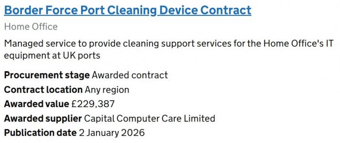 The Border Force has just signed off £220,000 to clean IT equipment!